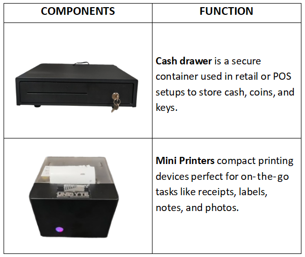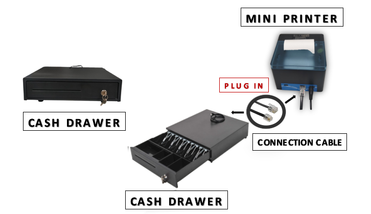 - The cash drawer is a secure container used in retail or POS setups to store cash, coins, and keys.