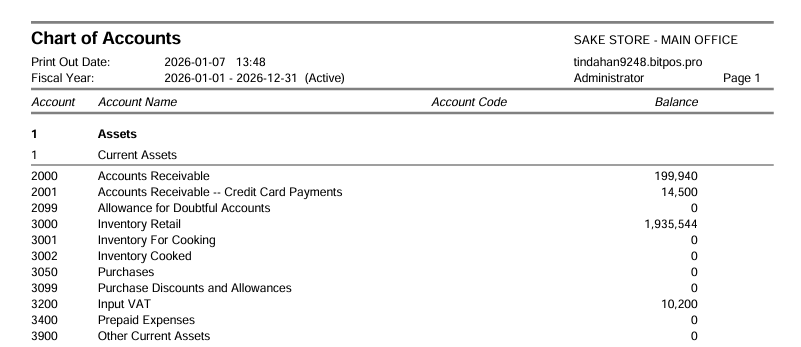 - The system will display the complete Chart of Accounts for the selected fiscal year.