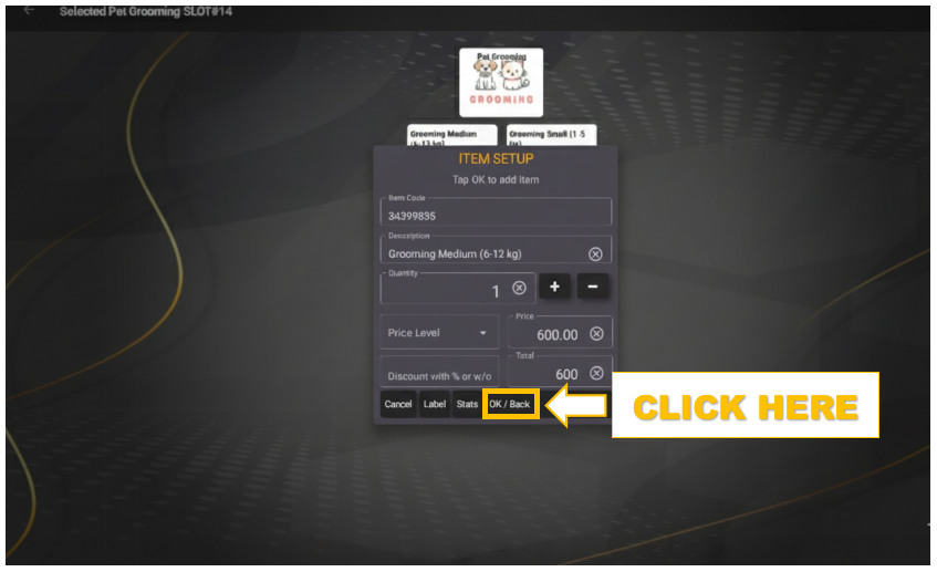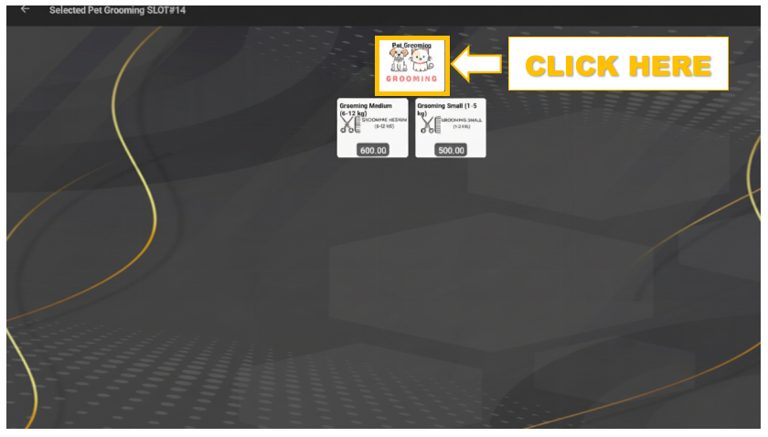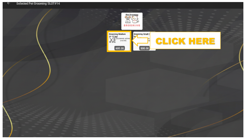 - Choose the type of grooming service (e.g., Groom Small Dog, Groom Medium Dog).