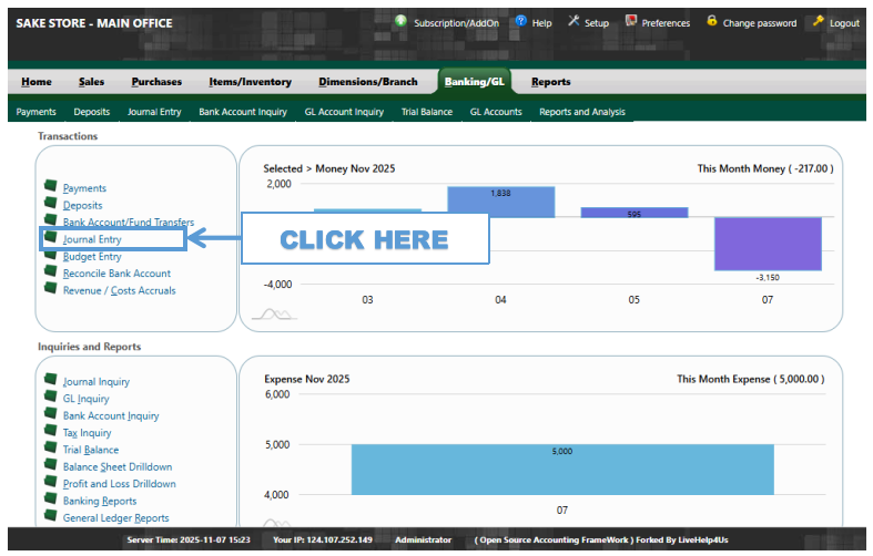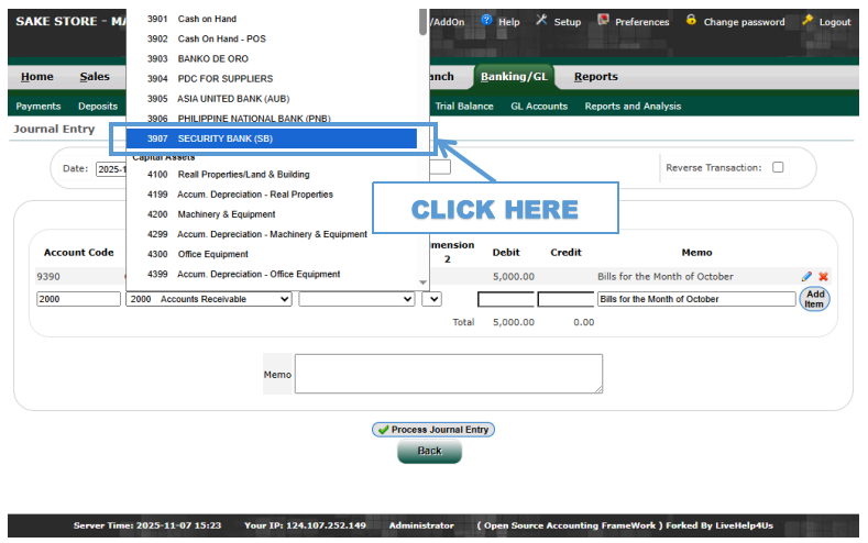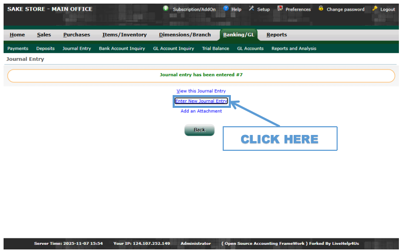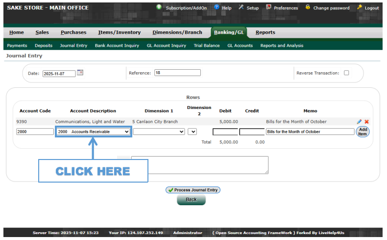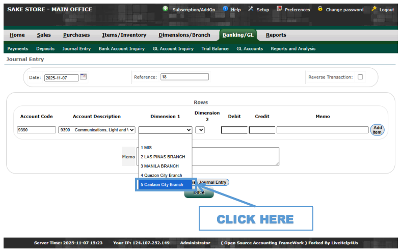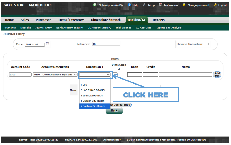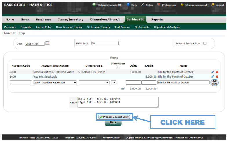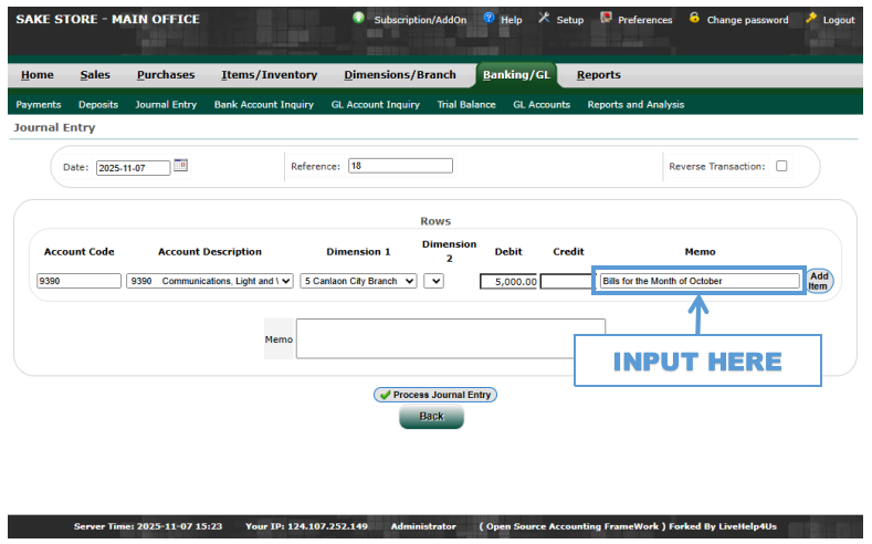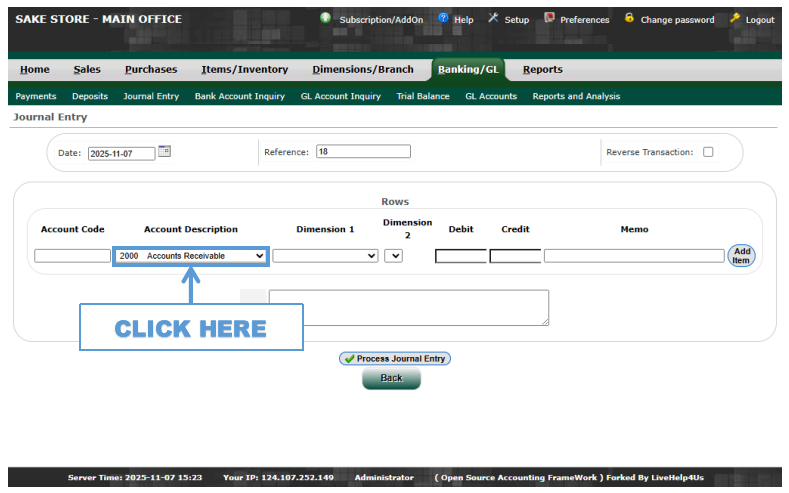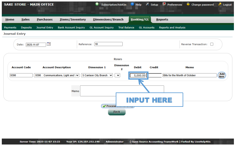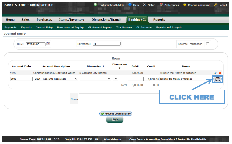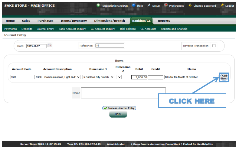 - After completing the debit entry, click Add Item to proceed with the credit entry.