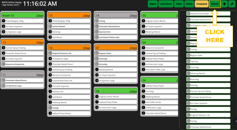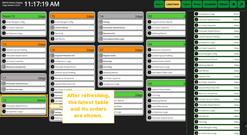 - Step 2: New tables with their orders will appear, indicating new items that need to be prepared.