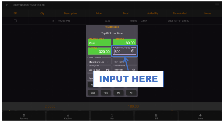 - Enter the customer's payment amount.