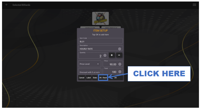 - Choose the hourly billiards item such as Hourly.