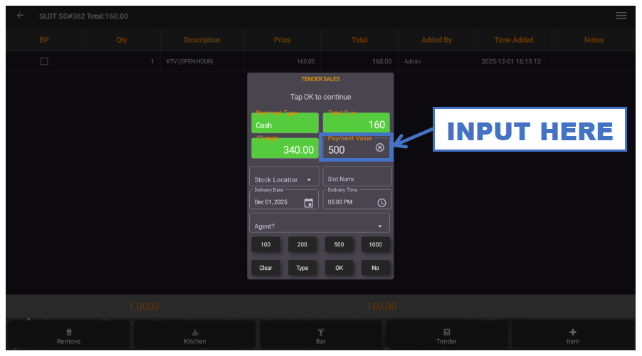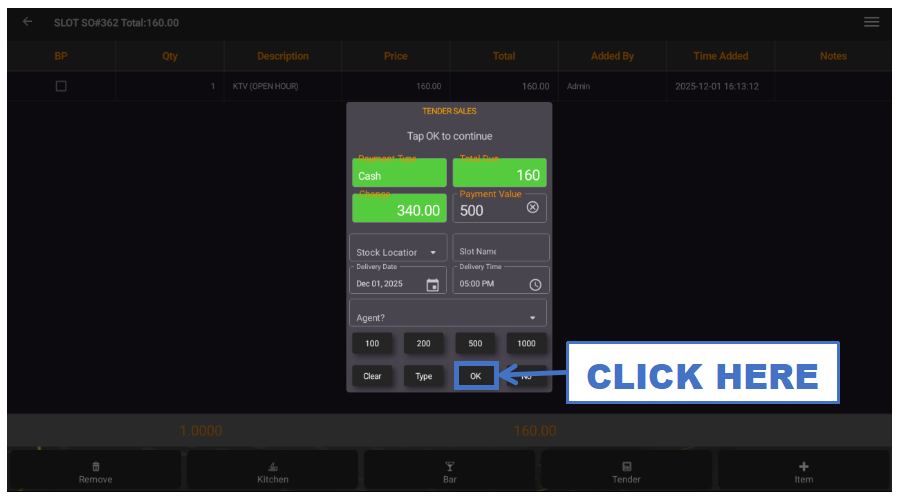 - STEP 5: Click Item (e.g., KTV – Open Time)