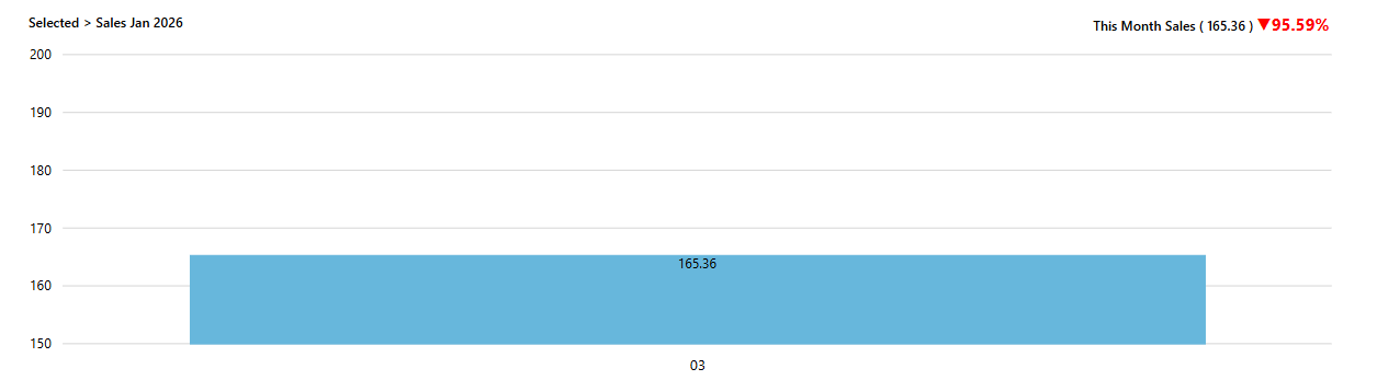 - A red colored arrow down (↓) with a percentage means sales are lower than last month.
