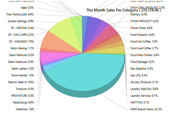 This part breaks down the sales data into different categories, showing the revenue generated by each category within the current month. It helps identify which product categories are driving sales.