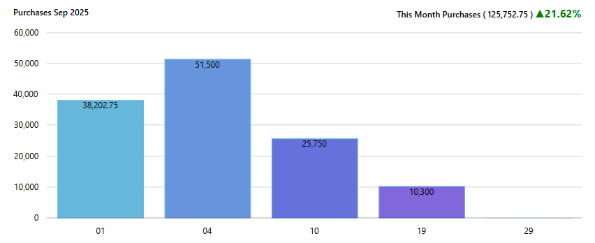 - Green arrow up (↑) – Purchases increased compared to last month