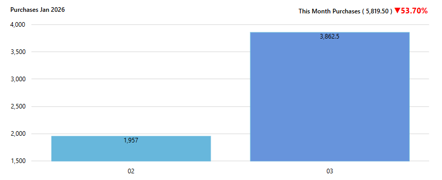 - Red arrow down (↓) – Purchases decreased compared to last month