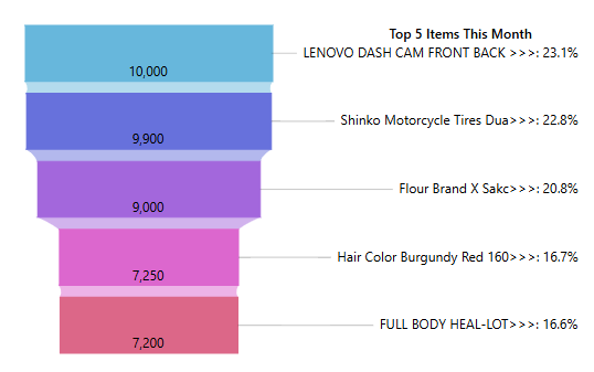 This section identifies the top five best-selling items based on sales volume or revenue generated. It helps users understand which products contribute most to overall sales.