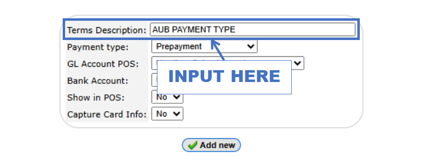 - Enter the name of the payment term (e.g., AUB Payment Term).