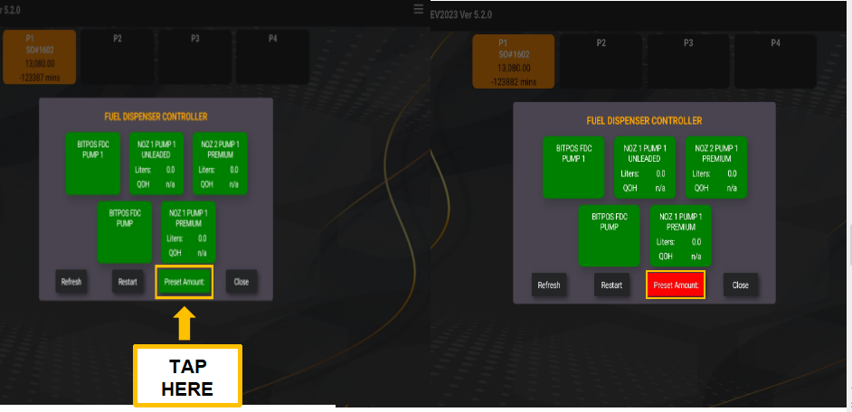 - Important: When using Liters mode, the preset should always be OFF (Red) to ensure the system reflects the exact fuel amount instead of rounding.