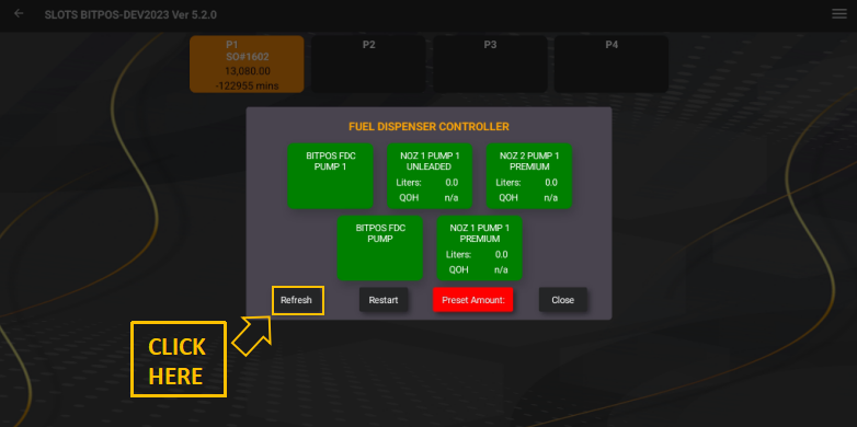 - Step 5: Press BitPOS FDC Pump 1 until the light turns green (Pump ON).