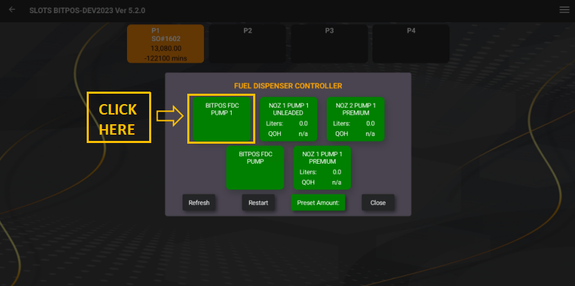 - Step 5: Press BitPOS FDC Pump 1 until the light turns green (Pump ON).