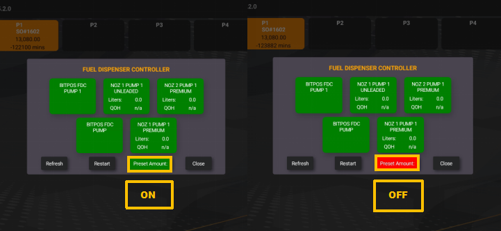 - Example: The pump shows P32.32, the system shows P32. (Preset ON)