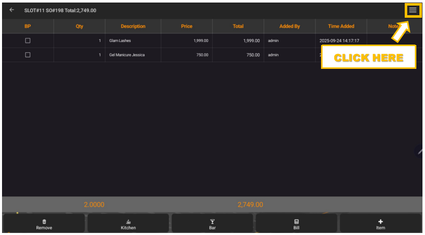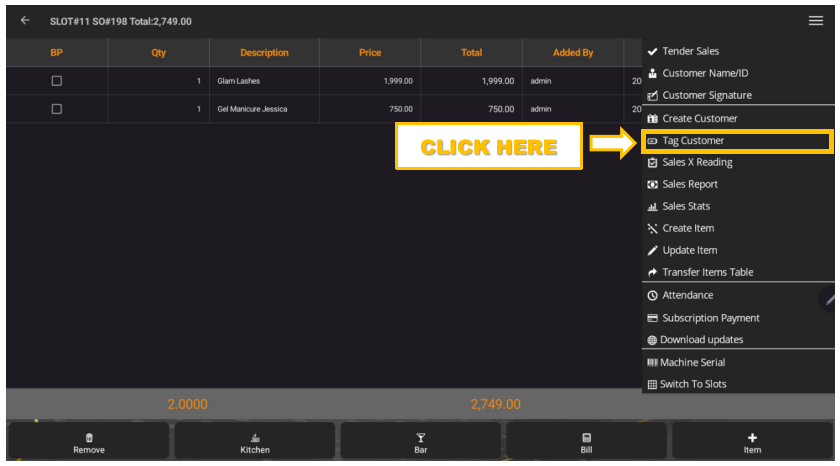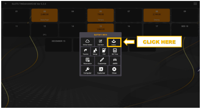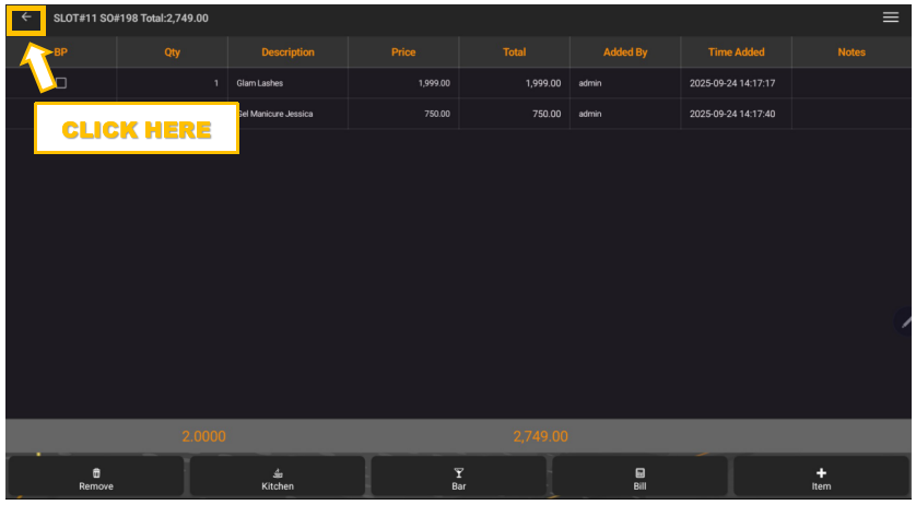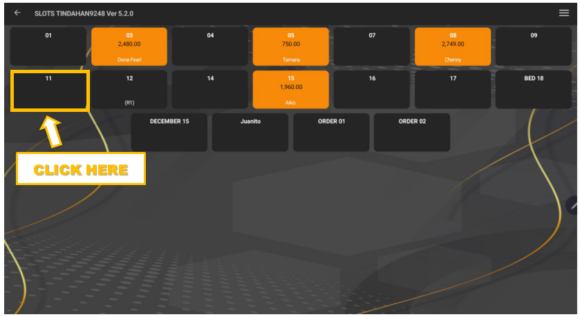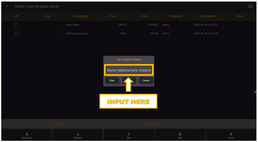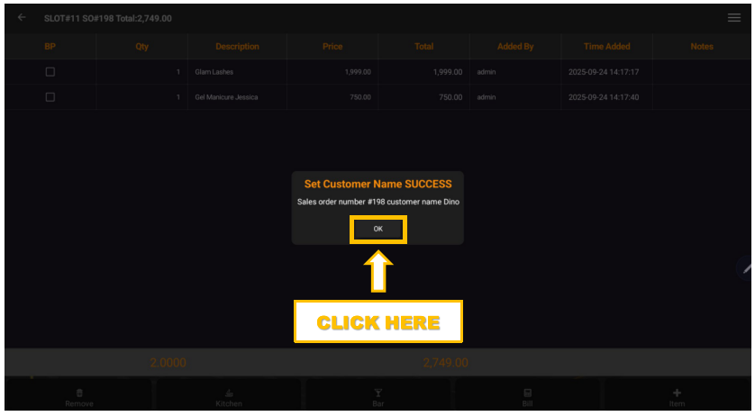 - STEP 18: The table will change color and show the customer’s name with the total amount